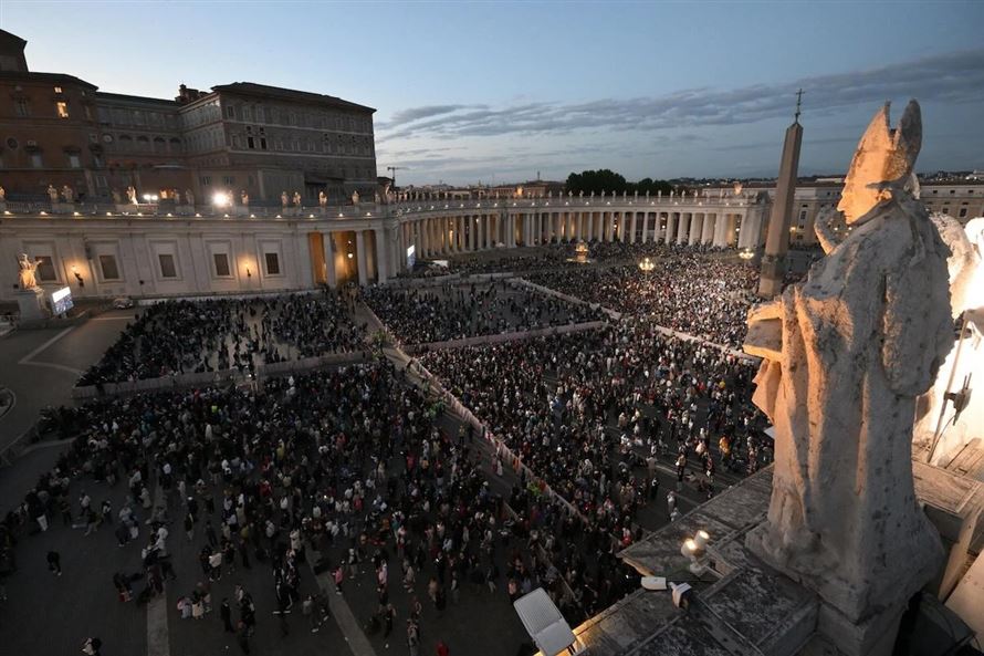 Na závěr svého projevu papež dodal: „Zvu všechny, kteří slouží ve Vatikánu, aby se každý den v 19 hodin účastnili této modlitby v bazilice sv. Petra“. Zejména „v sobotu 11. října v 18 hodin ji budeme společně recitovat na Svatopetrském náměstí během vigilie Jubilea mariánské spirituality, při které si připomeneme také výročí zahájení II. vatikánského koncilu“.